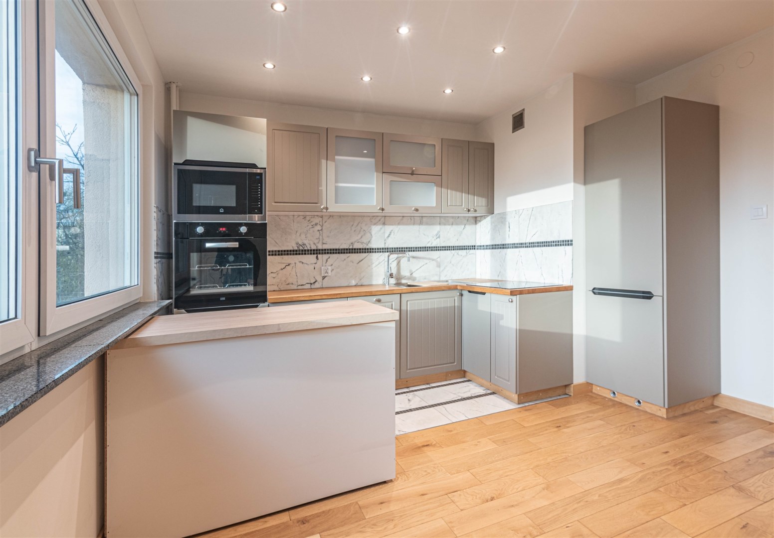 Do wynajęcia mieszkanie 3 pokojowe, z balkonem, położone na Pomorzanach przy ul. Klemensiewicza.Mieszkanie w bardzo dobrym standardzie. W pokojach na podłodze nowa deska dębowa, ściany gładzone, malowane stolarka drzwiowa wewnętrzna bezprzylgowa, zamki magnetyczne. Nowe trzyszybowe okna PCV z filtrem UV - okna weneckie, nie są potrzebne rolety lub zasłony. Parapety wewnętrzne wykonane z granitu królewskiego z zatopionymi żyłkami złota.Kuchnia w formie aneksu umeblowana i wyposażona w sprzęt AGD: płyta indukcyjna, piekarnik elektryczny, zabudowana kuchenka mikrofalowa, zmywarka oraz nowa, zabudowana lodówka z zamrażalką. Podłoga w części aneksu i fartuch roboczy wykonane z marmuru. Nad aneksem podwieszany sufit, docieplony wełną akustyczną.Łazienka razem z wc - bardzo duża kabina prysznicowa z odpływem liniowym i krzesełkiem, wyposażona w radio bluetooth - sterowane smartfonem. Podłogi i ściany wyłożone marmurem.W sypialniach na podłogach deska dębowa, okna trzyszybowe okna PCV z filtrem UV - okna weneckie, zamontowane oświetlenie sterowane smartfonem.Przedpokój - podłoga marmurowa, ściany częściowo wyłożone egzotycznym drewnem teak. W pokoju dziennym i sypialni z balkonem znajdują się szafy.Mieszkanie zaaranżowane w nowoczesnym stylu - salon otwarty na przedpokój, połączony z aneksem kuchennym, duża sypialnia z balkonem i mały pokój. Łazienka połączona z wc. Lokal po remoncie generalnym.Ekspozycja okien południowo - zachodnia (salon z aneksem i mały pokój od strony południowej, duża sypialnia z balkonem od strony zachodniej). Ogrzewanie i ciepła woda z sieci miejskiej, czynsz do wspólnoty wynosi 814,83 zł miesięcznie i uwzględnia wodę zimną, ciepłą oraz ogrzewanie. Do mieszkania przynależy piwnica.Wieżowiec w którym znajduje się mieszkanie posiada wjazd dla osób niepełnosprawnych bezpośrednio do windy - brak barier architektonicznych. Wydanie lokalu od ręki.OPŁATY:- czynsz najmu 3 000,00 zł,- czynsz do wspólnoty 814,83 zł,- opłaty za zużycie energii elektrycznej,- okresowe rozliczenia zużycia wody zimnej, ciepłej i ogrzewania,- kaucja 2 miesięczna, możliwość zapłaty w dwóch ratach,- najem okazjonalny, koszt notariusza 500 zł.Zapraszam na prezentację. Polecam.Oferta biura nieruchomości.Wynagrodzenie biura pokrywa każda ze stron transakcji.Aktualny cennik znajduje się na stronie biura NG Nieruchomości w zakładce „o nas”.Zobacz Wirtualny Spacer: https://panoramy.galactica.pl/virgo/491155