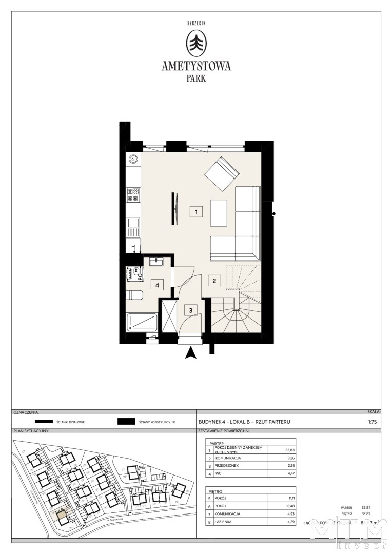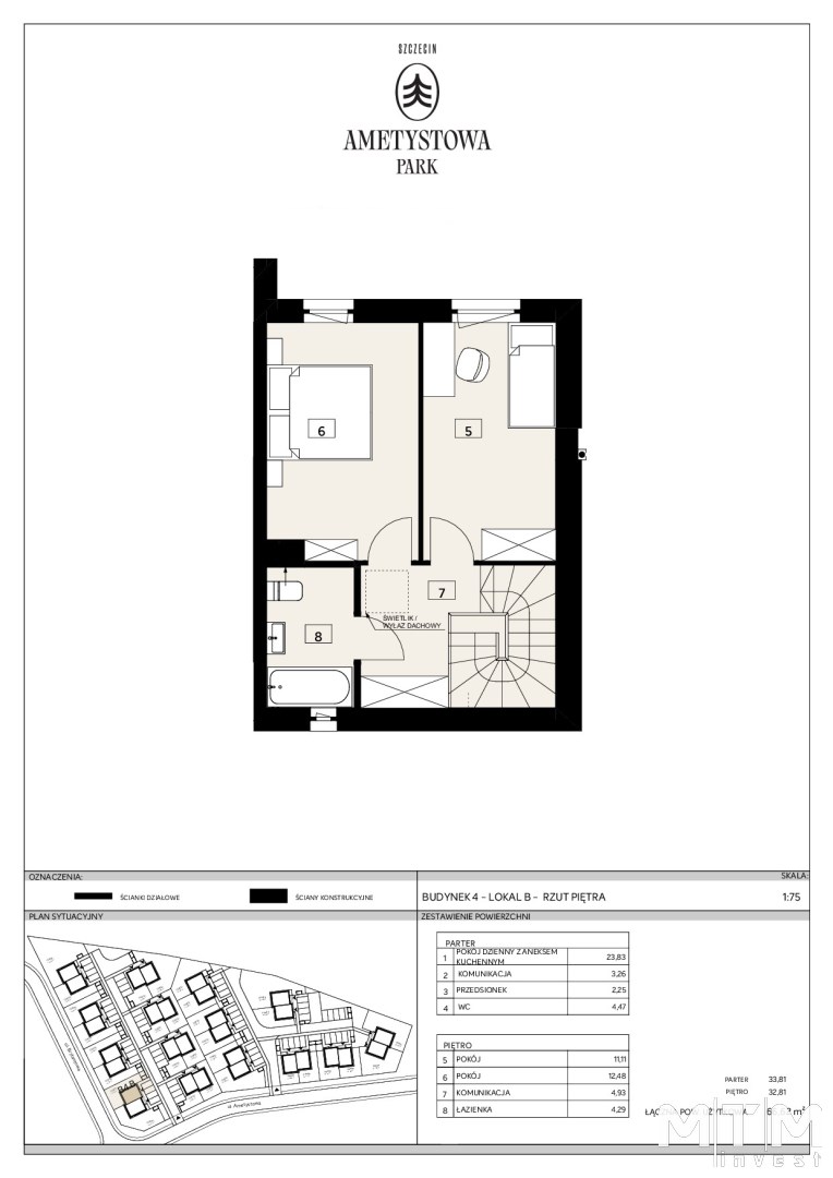 Mamy przyjemność zaprezentować nowoczesną inwestycję składająca się z 15 domów jednorodzinnych na prawobrzeżu w Szczecinie - Załomiu (w granicach administracyjnych Miasta Szczecin), oferujących trzypokojowe, funkcjonalnie zaprojektowane lokale.Każdy z nich wyposażony jest w dwie sypialnie, salon z aneksem kuchennym, dwie łazienki, kameralny ogródek oraz dwa miejsca postojowe.Domy wyróżniają się energooszczędnymi rozwiązaniami, takimi jak:pompa ciepła z ogrzewaniem podłogowym i możliwością montażu instalacji fotowoltaicznej.To idealne miejsce dla rodzin ceniących spokój, wygodę i nowoczesny styl życia.W pobliżu osiedla znajdują się liczne punkty handlowe i usługowe, szkoła, przedszkole oraz przystanki autobusowe.Prezentowany lokal ma powierzchnię użytkową 66,62 m2, liczoną zgodnie z prawem bez wliczania powierzchni pod ściankami działowymi. Do wyłącznego korzystania przez właścicieli jest ogródek o powierzchni ok. 96 m2.Budynki zostały zaprojektowane w sposób maksymalnie wykorzystujący powierzchnię, kondygnacja pierwszego piętra jest pozbawiona uciążliwości, ponieważ budynki mają płaskie dachy i nie ma żadnych skosów zabierających funkcjonalność.Domy w I etapie sprzedaży są już na ukończeniu i widać już docelowy kształt, zakończenie tego etapu jest planowane na koniec czerwca 2026 roku.Mieszkania oddawane będą w standardzie deweloperskim. Podana cena jest ceną brutto, zawierającą podatek VAT w stawce 8%.W galerii zdjęć znajdziecie Państwo przykładową aranżację wykończenia.Zapraszamy do prezentacji, na której będziecie mieli Państwo zobaczyć inwestycję oraz zapoznać się ze wszystkimi szczegółami z nią związanymi.